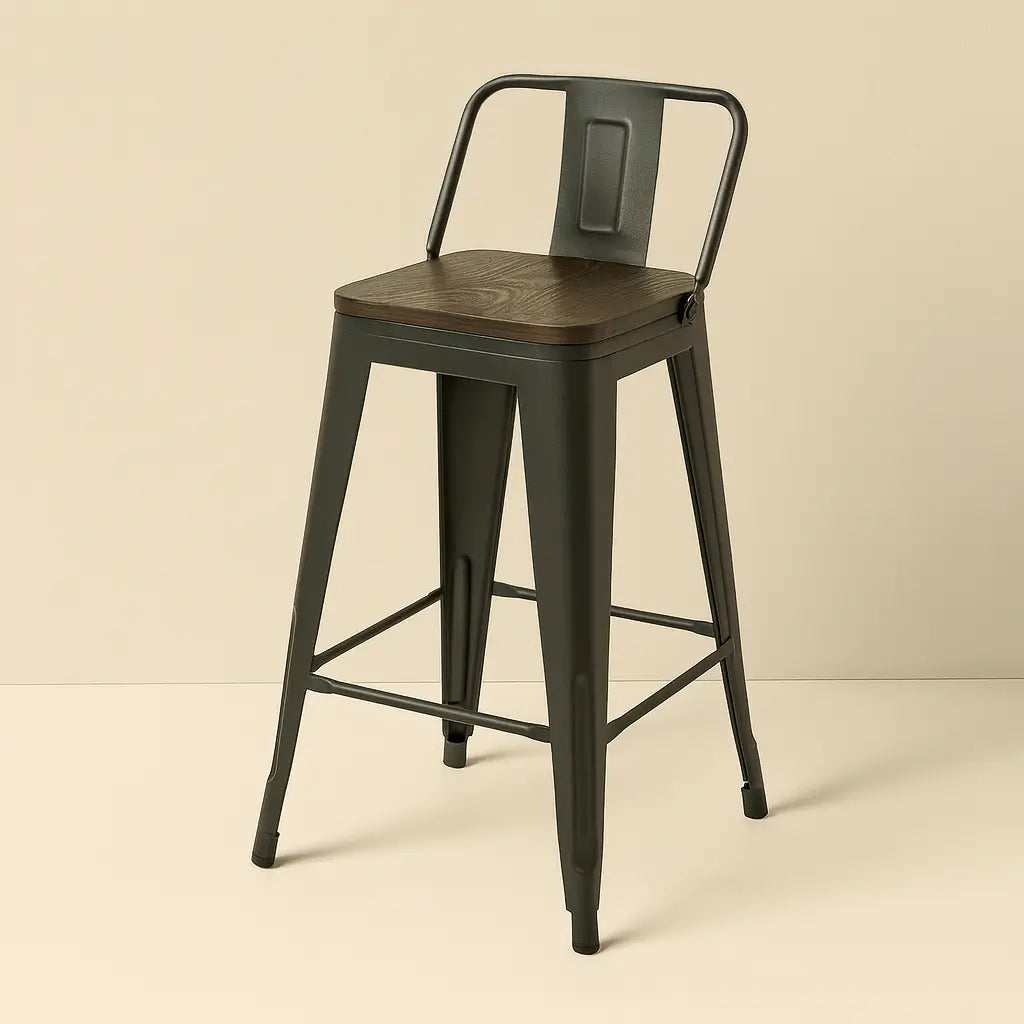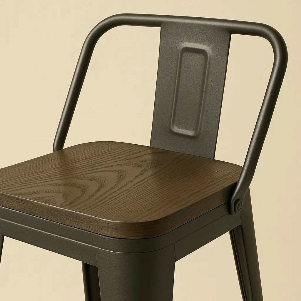 Ce tabouret allie élégance et robustesse grâce à son design industriel. Sa structure métallique au fini mat apporte une touche moderne et épurée, tandis que son assise en bois foncé ajoute chaleur et caractère. Parfait pour un intérieur de style loft ou contemporain, il s’intègre aussi bien dans une cuisine que dans un bar. Sa silhouette équilibrée et son allure minimaliste en font une pièce forte et raffinée.