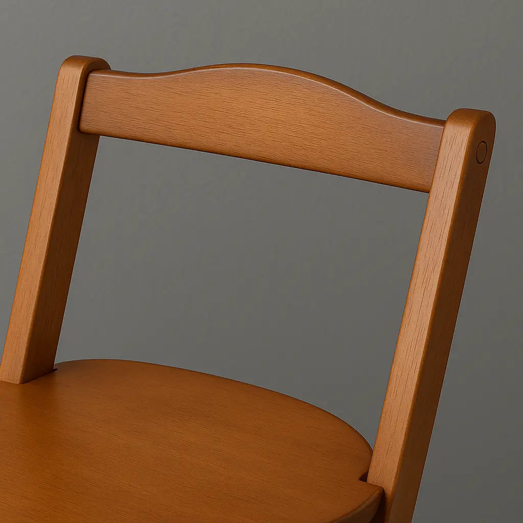 L’assise arrondie et le dossier légèrement courbé assurent un confort optimal. Le bois verni met en valeur les lignes douces et le veinage naturel, alliant esthétisme et praticité.