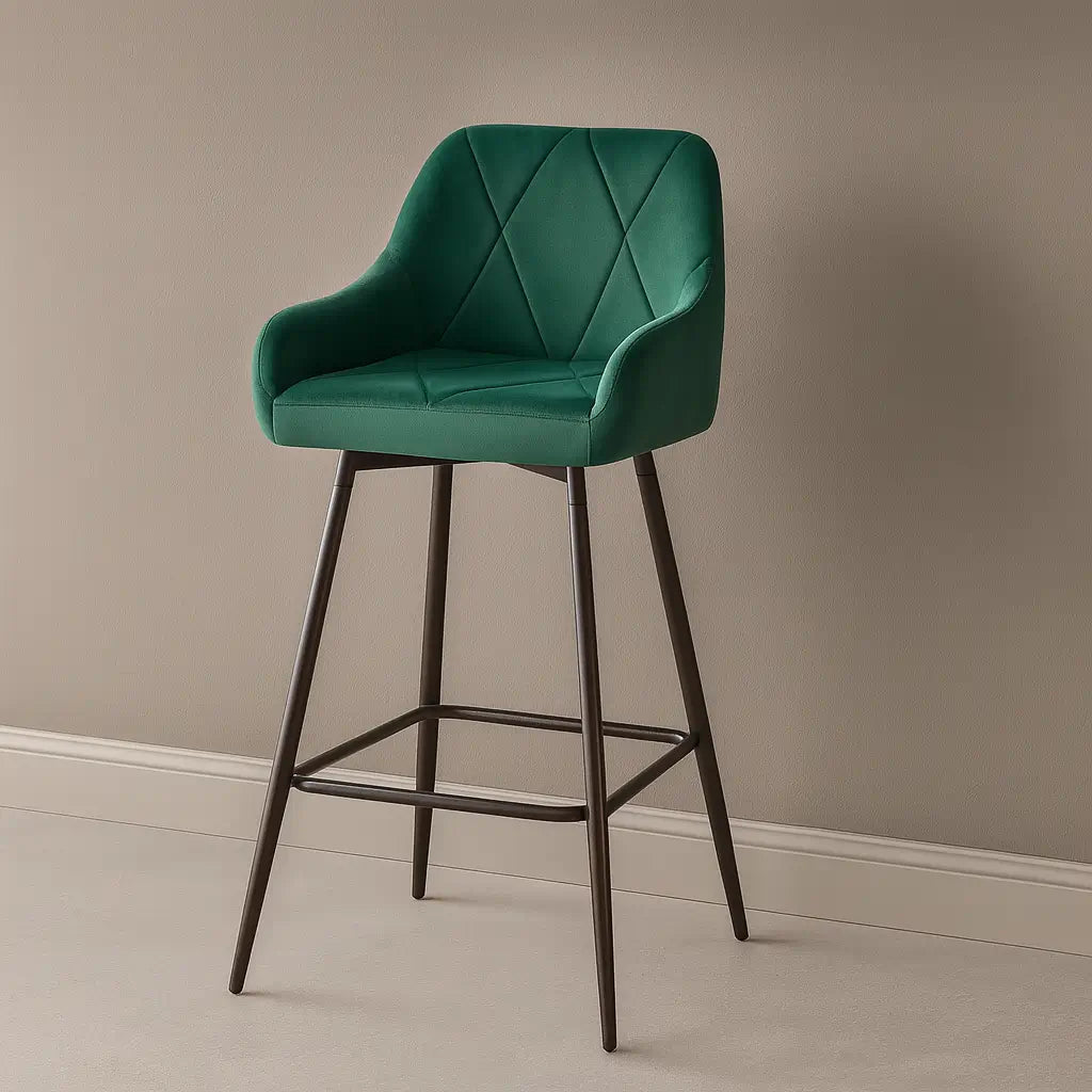 Ce tabouret allie design contemporain et confort enveloppant. Son assise généreuse et son dossier incurvé offrent un excellent maintien, tandis que la teinte vert émeraude apporte une touche de caractère et de raffinement à tout intérieur. Parfait pour sublimer un bar ou un îlot central avec style et élégance.
