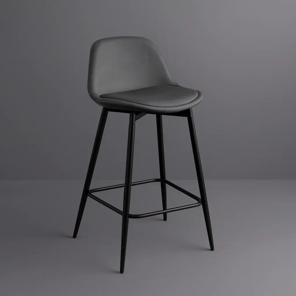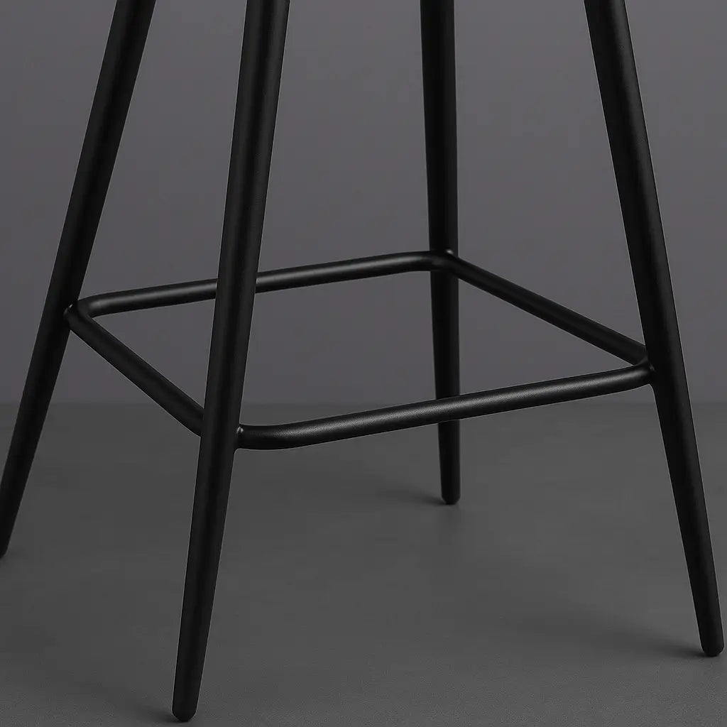 Le repose-pied, subtilement intégré à la structure en métal noir, assure un maintien naturel et une assise stable. Sa conception robuste renforce la durabilité du tabouret tout en ajoutant une touche géométrique raffinée à son design contemporain.