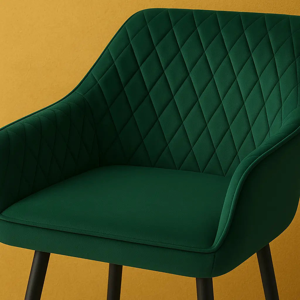 Le rembourrage généreux et le piquage en losanges du dossier soulignent un savoir-faire soigné. L’assise enveloppante offre un maintien parfait, mêlant esthétique et bien-être. Le velours doux au toucher apporte une note luxueuse, pour un confort durable et un style intemporel.