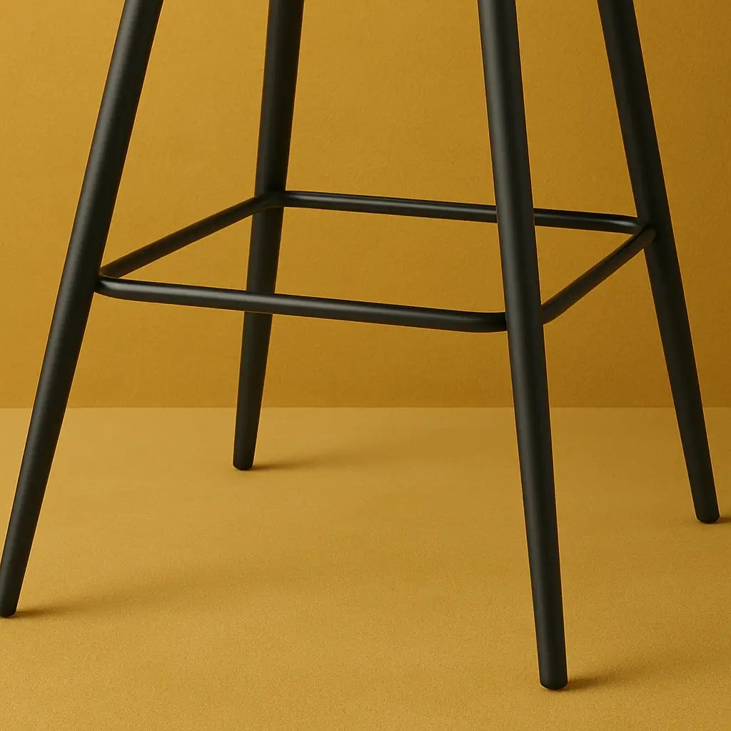 Les barres de renfort noires assurent une stabilité impeccable tout en servant de repose-pieds ergonomiques. Leur finition mate complète harmonieusement la structure du tabouret, garantissant une allure robuste et équilibrée sans compromettre l’élégance du design.