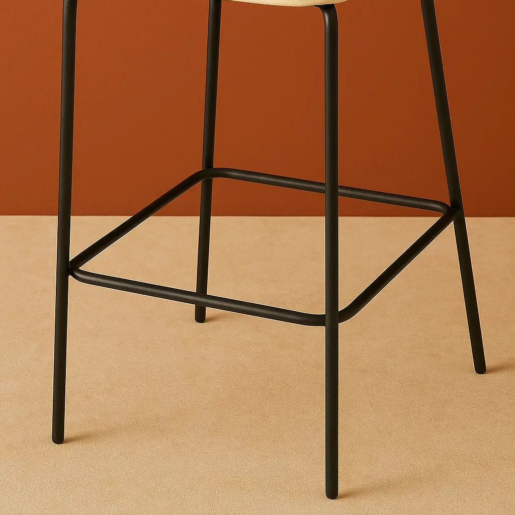La structure métallique, subtilement géométrique, apporte au tabouret une grande stabilité sans alourdir son design. Les repose-pieds intégrés assurent un confort optimal, tout en soulignant la rigueur des lignes et la qualité de fabrication. Un équilibre parfait entre ergonomie et élégance, pensé pour durer.