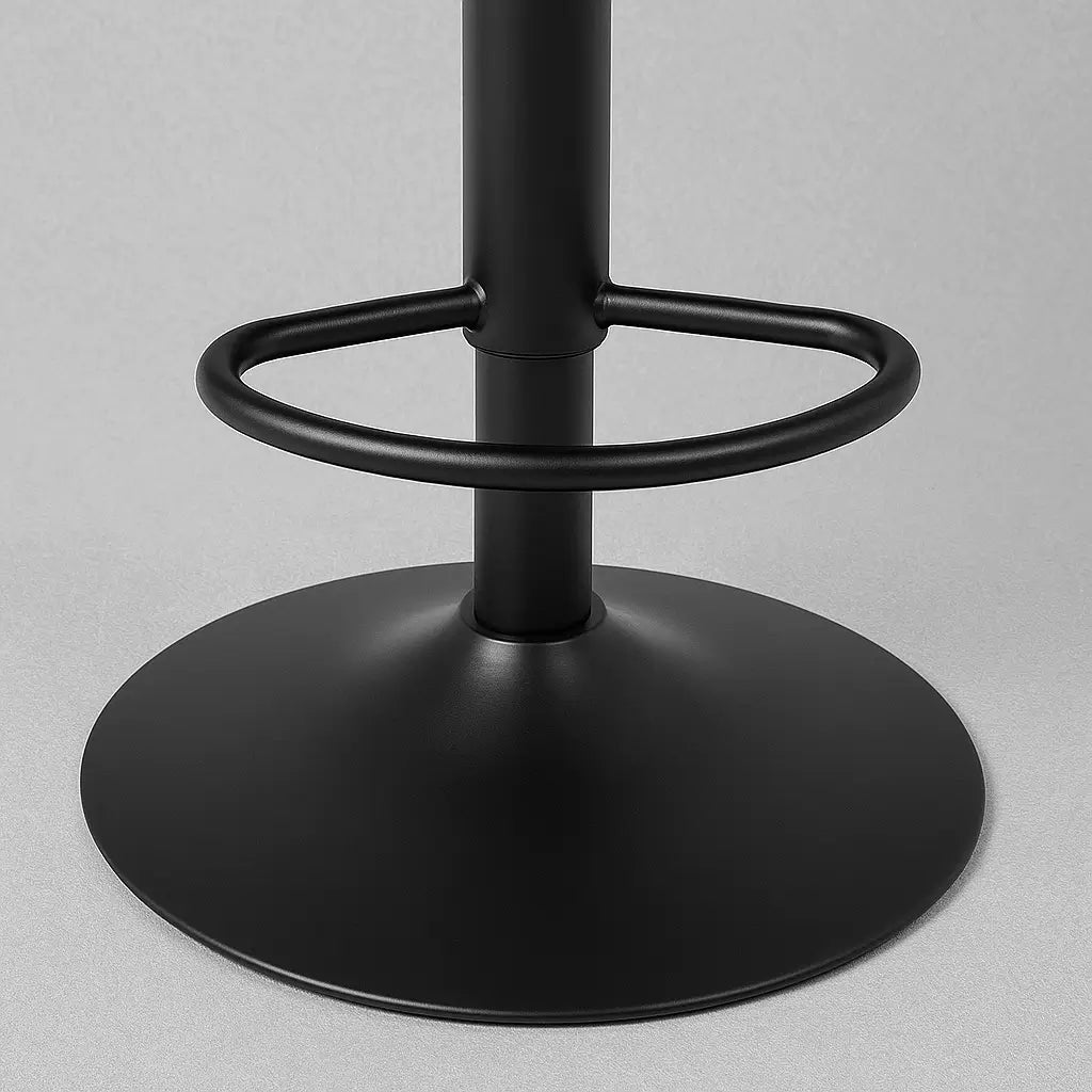 Le repose-pieds circulaire en métal noir assure une posture détendue et un soutien supplémentaire pour les jambes, même lors d’une utilisation prolongée. Solide et bien intégré à la structure, il complète le design du tabouret tout en garantissant une stabilité et une durabilité exemplaires.