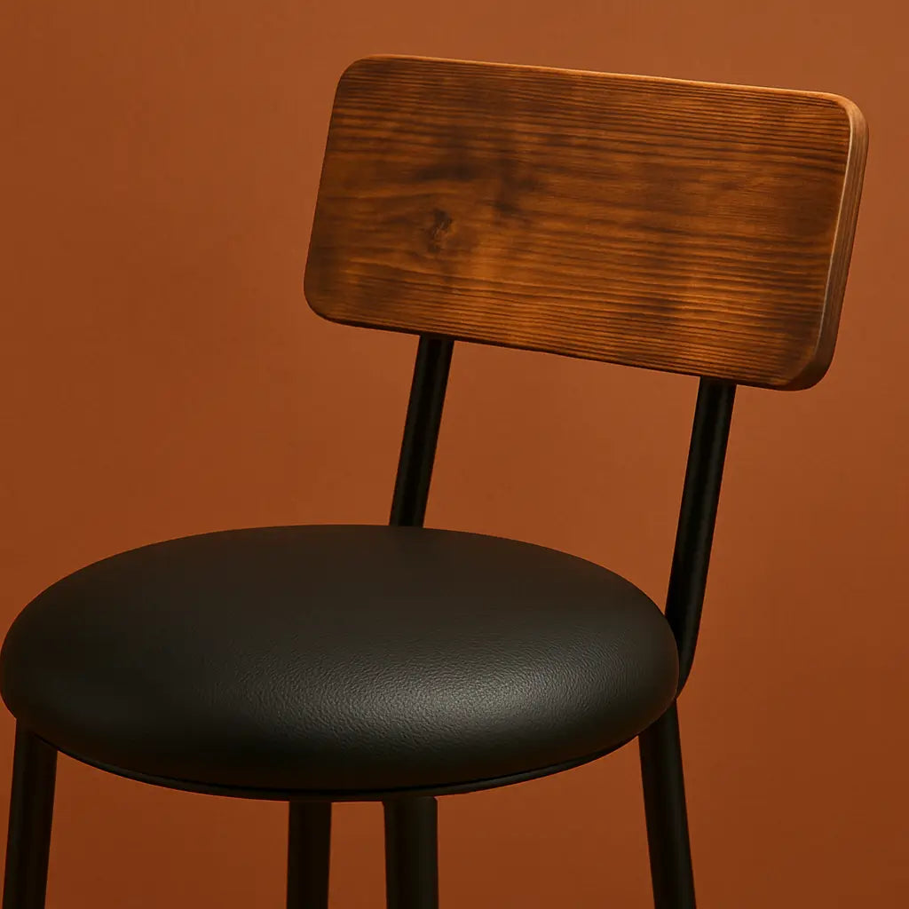 💬 En quelques mots : tabourets en bois et cuir PU, style industriel, confort haut de gamme et structure robuste.