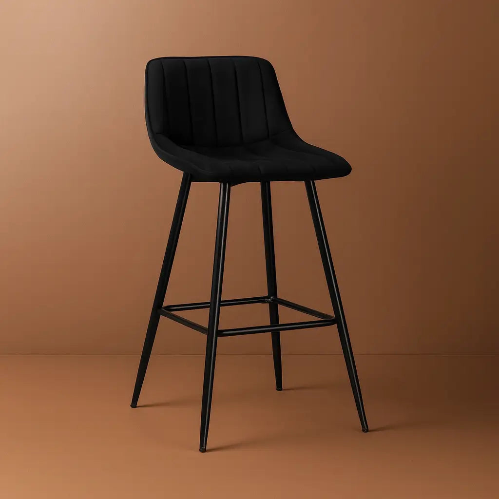 Lot de 2 - Tabourets de bar en métal design : un duo moderne mêlant velours doux, structure métal noir et dossier incurvé pour un confort élégant. Parfaits pour une cuisine contemporaine, un îlot ou un espace pro. Assise rembourrée, stabilité renforcée et finitions soignées pour une utilisation durable.
