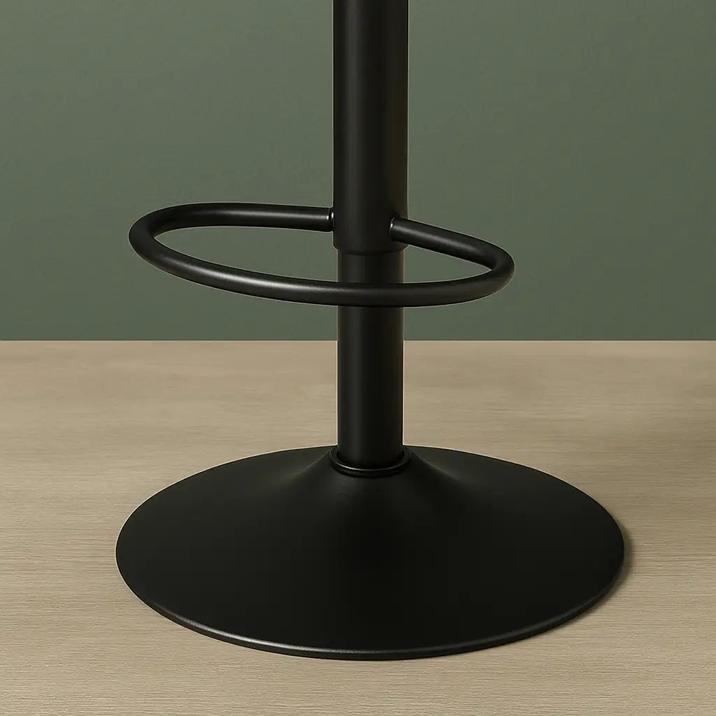 Le repose-pied en métal noir mat n’est pas qu’un simple détail : il assure un soutien confortable pour les jambes tout en soulignant le style industriel du tabouret. Associé à une base large et stable, il garantit sécurité et confort, même lors d'une utilisation prolongée.