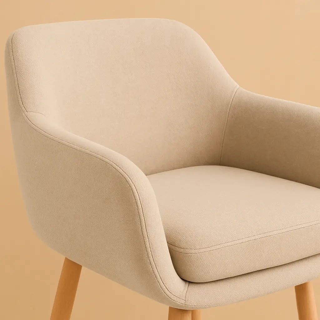 L’assise et le dossier du tabouret sont pensés pour offrir un soutien ergonomique tout en conservant une esthétique sobre et chaleureuse. Le tissu de qualité, au toucher doux et naturel, met en valeur la texture du revêtement, garantissant un confort optimal lors des repas ou des moments de convivialité.