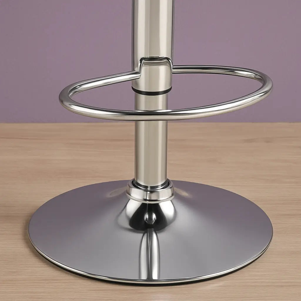 La base en métal chromé, associée à un repose-pieds circulaire ergonomique, garantit une stabilité exemplaire et un maintien agréable. Le fini poli reflète la lumière avec élégance, renforçant le caractère haut de gamme du tabouret tout en assurant un confort d’assise complet.