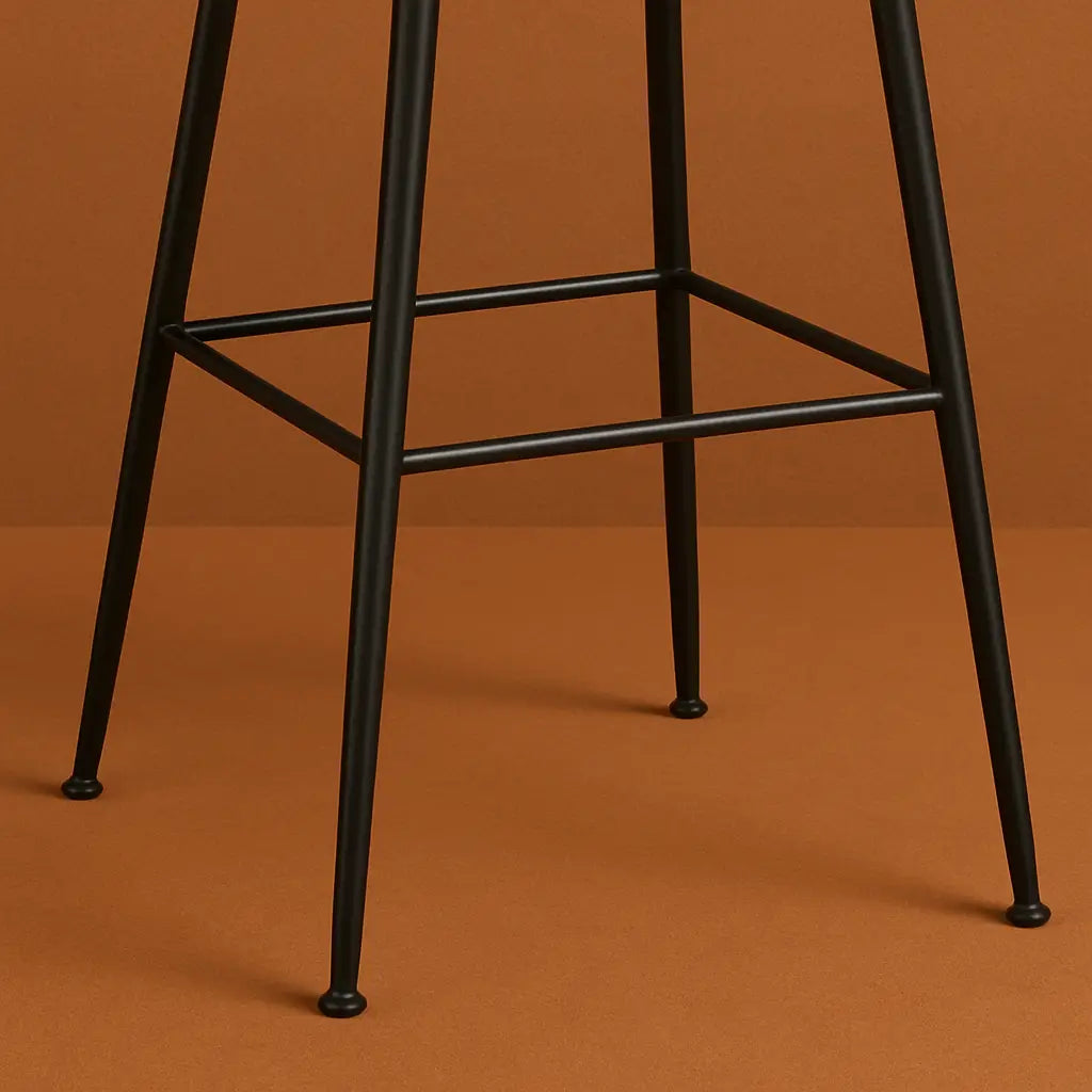 Les lignes fines du piétement métallique cachent une solidité remarquable. Les repose-pieds carrés, bien positionnés, garantissent un confort optimal pour les jambes, tout en renforçant la stabilité du tabouret. Un détail discret qui souligne le soin apporté à chaque élément du design.