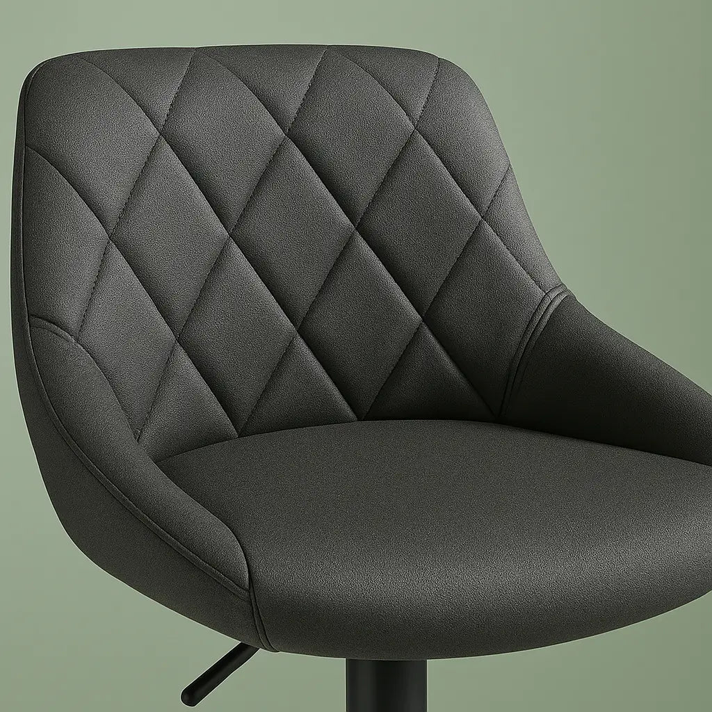 L’assise ergonomique, associée à un dossier généreusement rembourré et à des coutures matelassées en losanges, offre un confort supérieur tout en soulignant un savoir-faire de qualité. Ce niveau de finition confère au tabouret une allure haut de gamme, pensée pour un usage quotidien aussi esthétique qu’agréable.