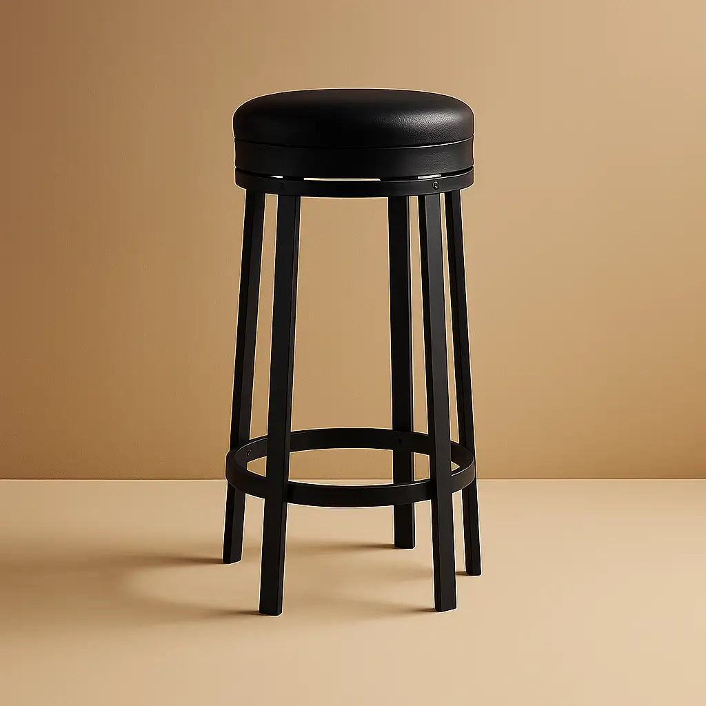 💬 En quelques mots : tabourets pivotants 4 pieds, cuir PU noir, rotation 360°, design moderne et structure métallique stable.