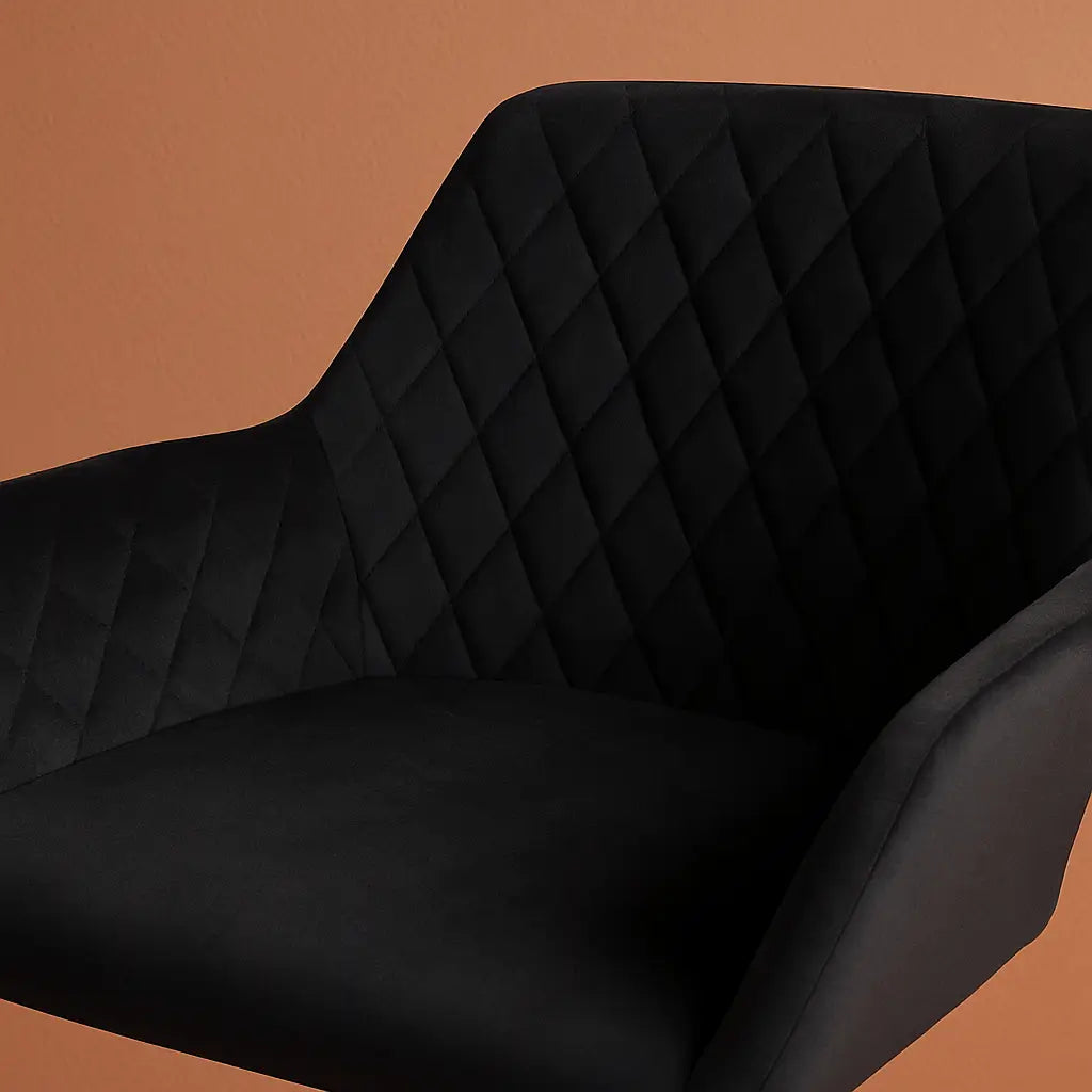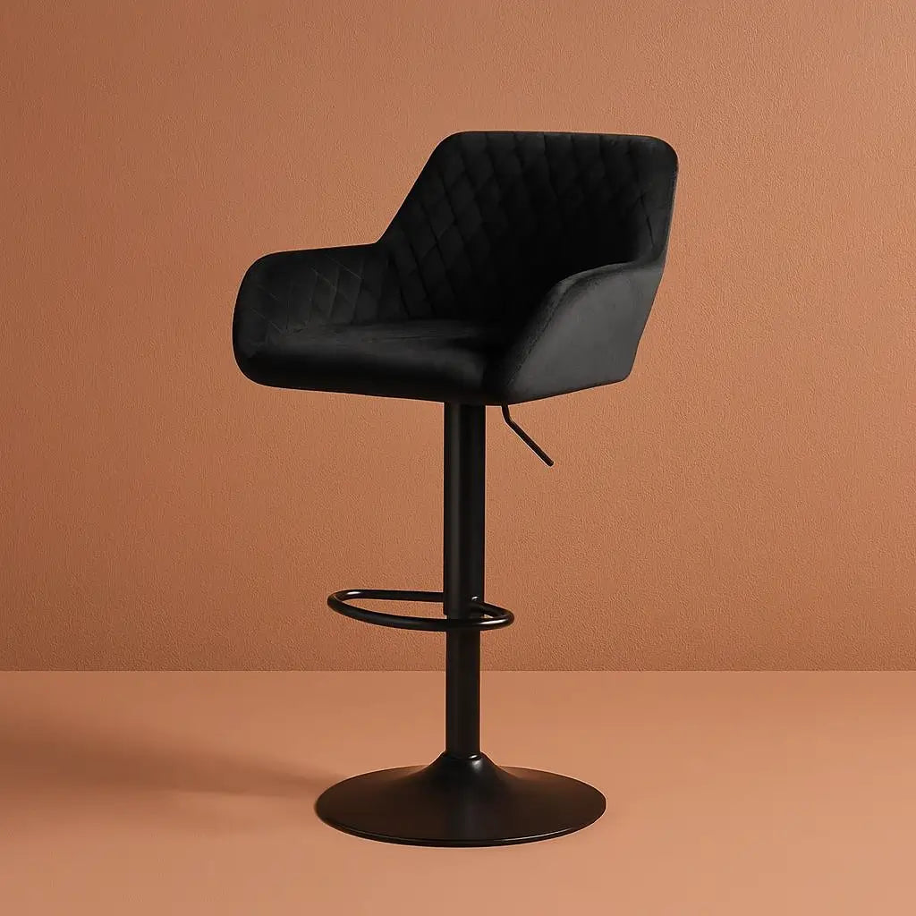 Lot de 2 - Tabourets de bar pivotant avec accoudoirs : un modèle moderne qui apporte élégance et confort à votre intérieur. Parfaits pour une cuisine, un îlot central ou un espace bar contemporain. Velours doux, accoudoirs intégrés et hauteur réglable pour une assise durable et stable.