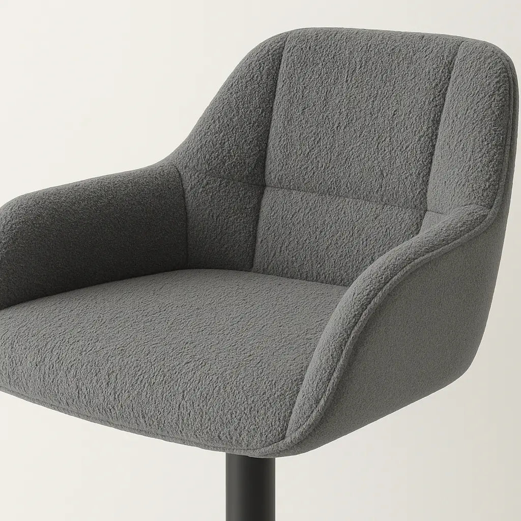Avec son tissu bouclette doux, sa base noire mate et son design enveloppant, ce tabouret offre un confort optimal et une stabilité parfaite. Parfait pour apporter une touche moderne à votre cuisine ou coin repas.