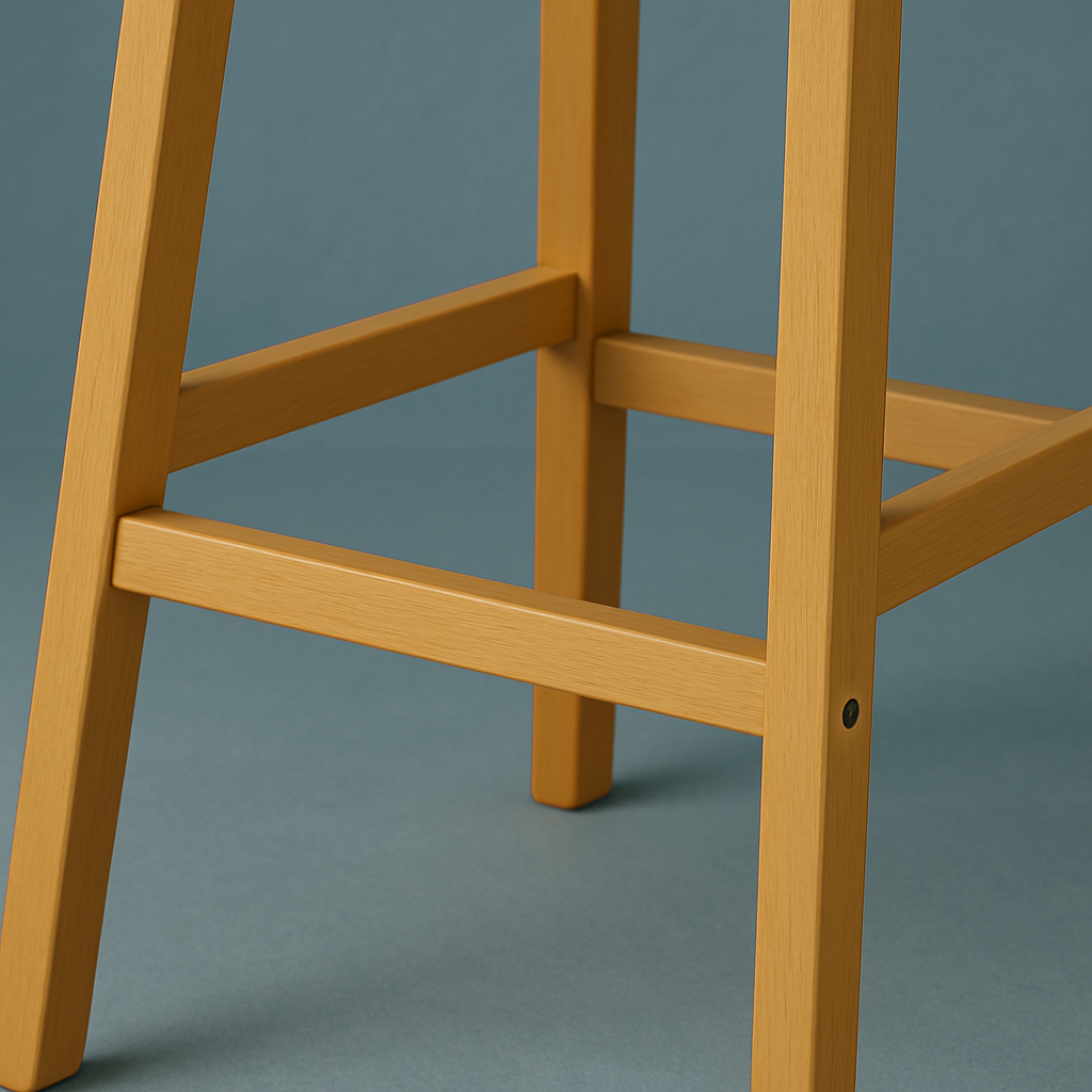 Le repose-pieds en bois massif témoigne de la solidité et de la stabilité du tabouret. Grâce à son positionnement précis et à l’assemblage robuste, il garantit une posture confortable tout en renforçant la structure générale. Sur la vue d’ensemble, cet élément essentiel contribue à l’allure équilibrée et robuste de la chaise, affirmant son design fiable et durable.